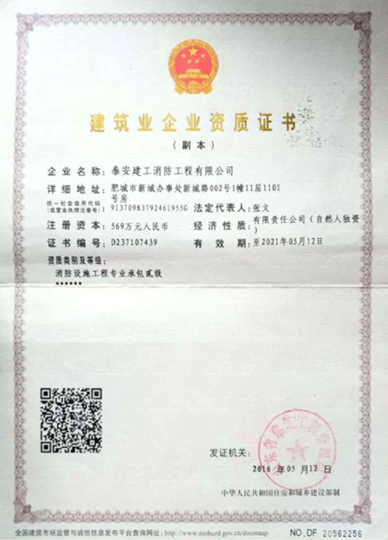 具有建筑消防設(shè)施貳級(jí)施工資質(zhì)